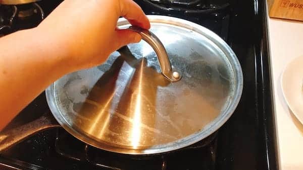 - Add ½ tbsp water. Cover with a lid. Lower the heat to medium-low and steam the dumplings for about 2-2.5 minutes. The fillings should be cooked through.